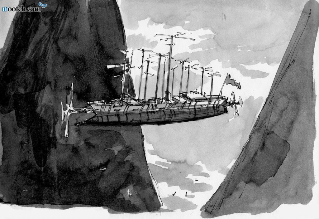 نویسنده ی کتاب بیست هزار فرسنگ زیر دریا نیز بی شک دارای همین عقیده بوده است. ژول ورن در آن جا یکبار کشتی شکسته ای را توصیف می کند که در اعماق دریا معلق و بی حرکت ایستاده است. در فصل دیگر نیز او توجه ما را به کشتی هایی جلب می کند که “آزاد و معلق در وسط آب ایستاده اند و به تدریج در حال پوسیدنند.”