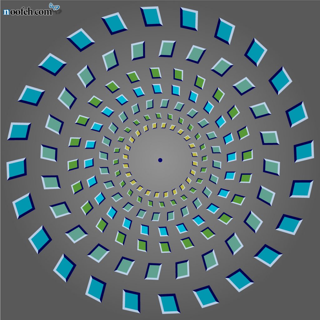 چنانچه روی ضربدر آبی متمرکز شده و سرتان را به سمت جلو و عقب حرکت دهید، یک چرخش موهومی ضعیف را مشاهده خواهید کرد: